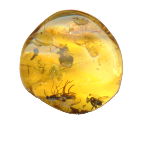 Der Bernstein ist kein Mineral sondern ein versteinertes (fossiles) Harz, dass vor ca. 50 Millionen Jahren als Pech (Harz) aus einer Kiefernart tropfte und danach versteinert ist. Da der Bernstein ein fossiles Harz ist, ist er auch sehr leicht, so kann der Bernstein in sehr stark salzhaltigem Wasser schwimmen (schweben). Manchmal befinden sich auch Insekten- Rinden- oder Sameneinschlüsse im Bernstein.